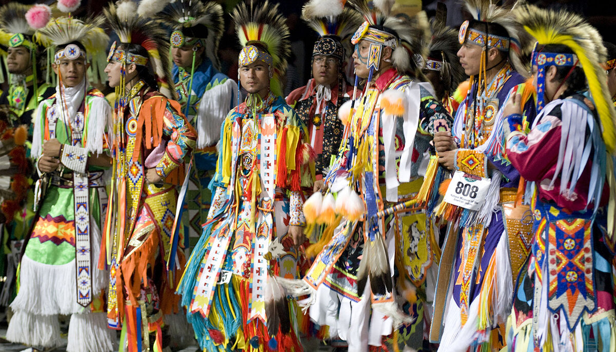 Пау-вау – традиционное собрание североамериканских индейцев. Слово «пау-вау» пришло из языка племени наррагансеттов и означает «духовный лидер». Изначально собрания, напоминающие современные пау-вау, были распространены в географическом регионе США Великие равнины, протянувшимся с Севера на Юг в центральной части страны, в конце XIX – начале XX вв. После, долгое время на традиционные практики индейцев были наложены ограничения, но они продолжали собираться тайно, сохраняя свою культуру. Пау-вау могут быть закрытыми мероприятиями исключительно для племён или открытыми для публики, а также иметь конкурсную программу, с большими денежными призами. Проходят они в самых разных городах США и Канады и могут длиться от одного дня до одной недели. Их даже проводят в тюрьмах, потому что, конечно же, представители коренных народов Америки, также как и все остальные, совершают правонарушения. Вот, например, запись выступления одного из участников на конкурсе в номинации «ручной барабан». Площадка
