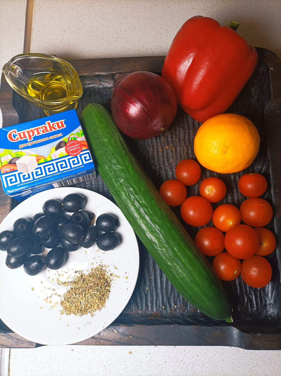 Приветствую. Сегодня предлагаю вашему вниманию рецепт простого греческого салата. Ходят бесчисленные споры о правильности нарезки этого салата. Кто-то говорит, что нужно резать крупными кусками, кто-то до хрипоты кричит, что необходима нарезка ломтиками. Мне повезло попробовать этот салат на его родине. Какого же было мое удивление, когда мне принесли миску, точнее лучше сказать тазик, с этим самым легким салатиком. Полкило крупно резанных овощей, сыр фета цельным куском грамм 200 и заправленный стаканом, не меньше, оливкового масла. Салат был безумно вкусный, но легким тот обед я назвать не могу. Ниже привожу рецепт того самого салата, но с удобной для еды нарезкой и разумным количеством сыра и масла. Наша задача вкусить, а не объесться до потери сознания. Нам понадобиться на 2-3 порции: - огурец 1 шт крупный или 2 шт маленьких - половина болгарского перца - помидоры 2 шт (главное найти действительно вкусные помидоры, а не пластиково-безвкусные. Мне в этот раз повезло с чери. Поэтому