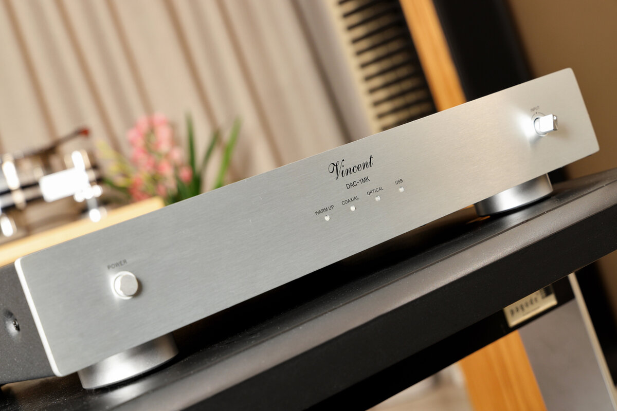 Компания Vincent модернизировала свой младший ЦАП DAC-1, улучшив его звучание и возможности. DAC-1 МК теперь поддерживает прием DSD сигнала через USB вход и может воспроизводить файлы с максимальным разрешением 32 бит / 384 кГц. Через оптический и коаксиальный вход DAC-1 MKобрабатывает цифровой сигнал с максимальным разрешением 24 бит / 192 кГц. В качестве микросхемы ЦАП в DAC-1 МК используется чип ES9038, а вся последующая обработка сигнала происходит по балансной схеме. Чтобы добиться наилучшего звука, были использованы только высококачественные детали, произведенные хорошо зарекомендовавшими себя производителями (например, WIMA или Nichicon). Так же, как и у старшей модели DAC-7, в блоке питания DAC-1 МК используется трансформатор с двойной обмоткой. Одна обмотка предназначена исключительно для аналоговой части устройства, другая - только для цифровой части. Обе части получают оптимальную мощность, а также сводят к минимуму паразитные наводки. Это улучшает динамику и позволяет получ