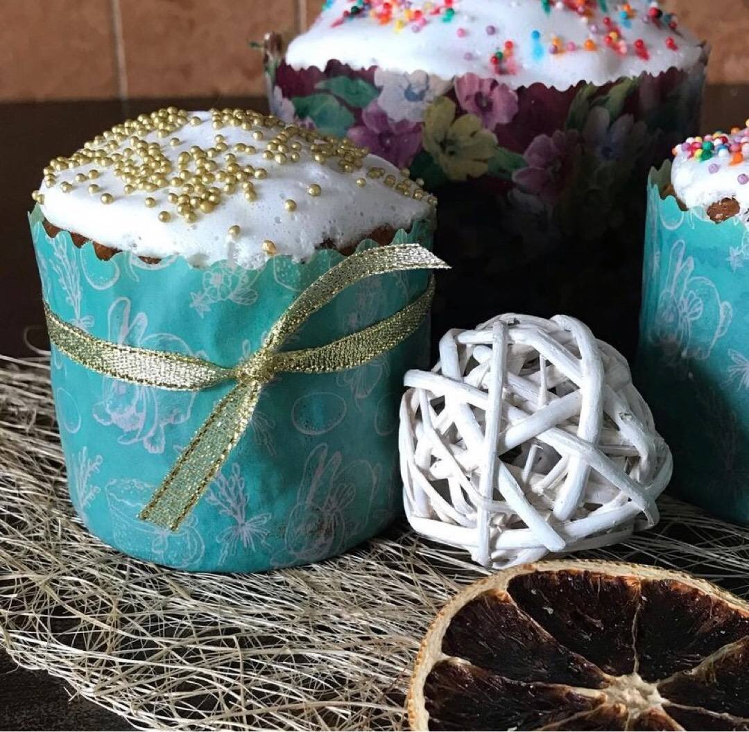 Готовые куличи извлекаем из духовки и даем остыть. Украшаем глазурью и кондитерской посыпкой.