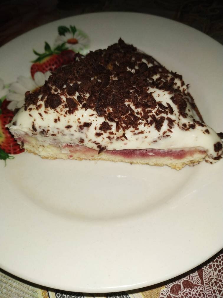 Натираем на крупной тёрке чёрный шоколад (40-50 гр). Посыпаем верх торта тёртым шоколадом. Отправляем в холодильник минимум на 3 ч. Лучше на ночь. Утром к чаю или кофе готов прекрасный десерт. Приятного аппетита!