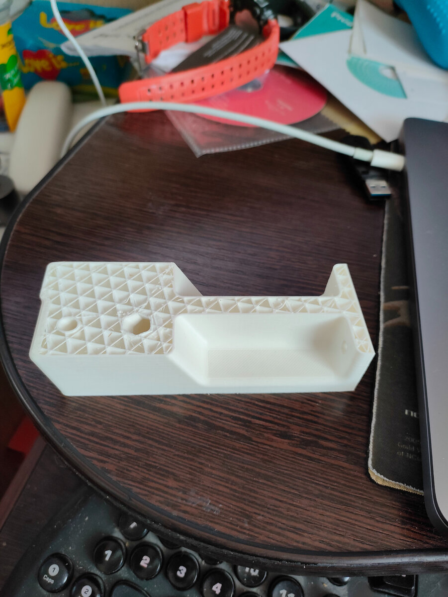 После прошивки и первых опытов я решил, что я готов к серьезным свершениям и начал печатать крепление для катушки. Но тут меня ждало то, к чему я пока не был готов. У меня кончился стартовый пластик. Вот как он мог так со мной поступить? Так же я понял, что я не знаю как менять пластик. И тут мне решил помочь вечноумный ютуб. Но оказалось, что способов менять пластик больше одного. Так нельзя поступать с новичками! Причем каждый способ утверждает, что другой не правильный. Первый - это раскалить сопло и резким уверенным, но разумным движением сначала продернуть вперед, а потом назад остатки прутка. Ага! Это конечно хорошо, но неплохо бы об этом знать заранее. Пруток то уже тютю в ретрактор. Благо можно снять фитинг с трубкой и схватить там за конец прутка.Второй способ это проталкивать старый пруток новым и так пока новый не вылезет из сопла. Типа это максимально нативный и органичный способ и защищает от пробок. Но что то меня в этом способе напрягало. А вдруг второй пруток в трубке и