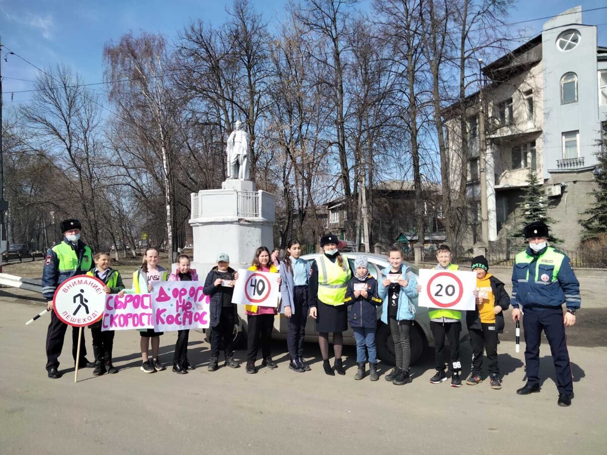 В день космонавтики сотрудники ОГИБДД ОМВД России «Балахнинский» совместно с юными инспекторами дорожного движения СОШ №12 и СОШ №20 провели флешмоб "Дорога - не для космических скоростей».