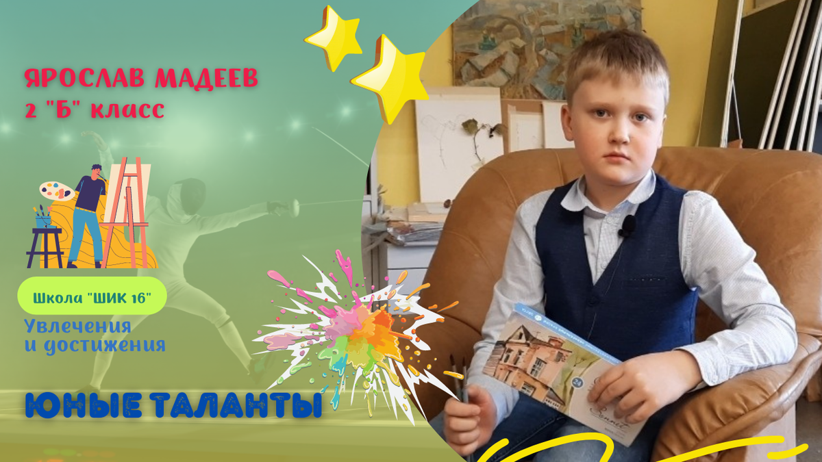 Ярослав великолепно читает стихотворения! Ему удалось не раз поучаствовать в конкурсах чтецов, заняв там почетные места 🙌 А также, активно занимается фехтованием 🤺 Это вид спорта, которым он хочет усердно и дальше заниматься 💪