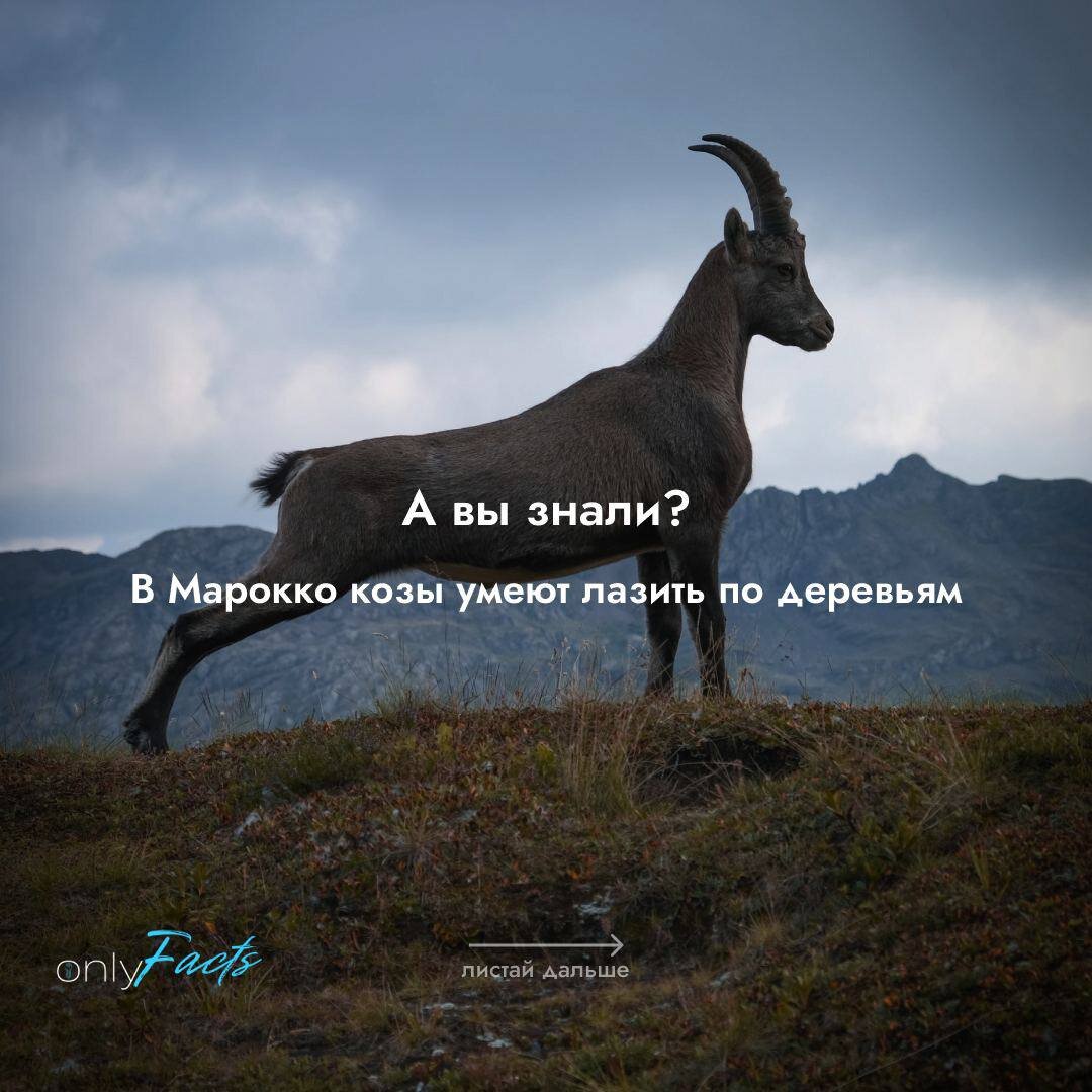 Мирно пасущихся на лужайках коз можно встретить в любой российской деревне. А вы когда–нибудь видели козу, сидящую на дереве? Шутка? Нет! В Марокко козы умеют лазить по деревьям. А все, потому что из-за засушливого климата, трава здесь очень плохо растет. Деревья же более выносливы и покрыты зелеными листьями. Козы залазят на них для того, чтобы восполнить недостаток пищи. Задачей пастухов, как правило, является не только перегон коз от дерева к дереву и контроль стада, но и сбор косточек из плодов аргании, которые козы выплевывают. Из них производят ценное аргоновое масло, используемое в косметологии и кулинарии. Местные козы очень любят питаться его плодами и листьями. Со временем они научились забираться практически на самые верхушки деревьев. Не будем их обвинять, ведь каждый из нас любил в детстве лазить по деревьям, не так ли?