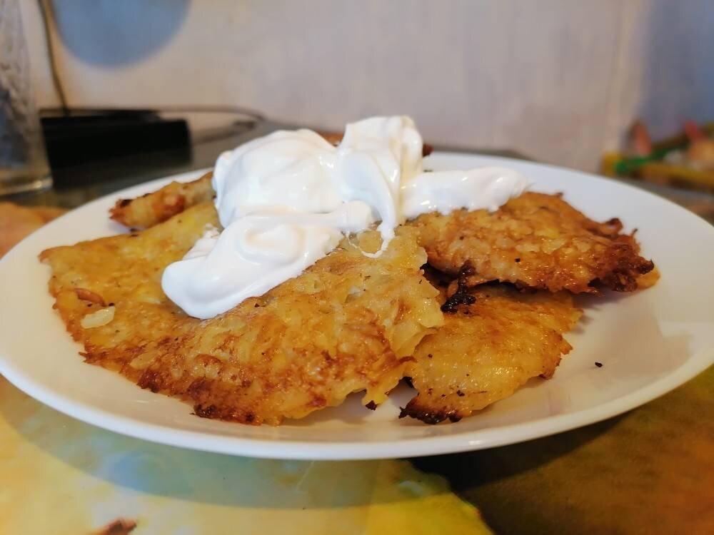 Вкусно😋Полноценное самостоятельное блюдо 😊 #драники #картофель #едимдома #домавкуснее Ингредиенты: Картофеля, Яйца, Соль/специи, Луковицы, Мука, Растительное масло для жарки Способ приготовления: Натереть картофель на крупной тёрке, выждать минут 15,чтобы отжать воду. Нарезать мелко лук, по желанию можно добавить тертую морковь и зелень. Добавить к картофелю лук, яйца, соль, специи, муку. Все перемешать. Жарить на среднем огне с двух сторон. Получаются очень вкусные драники 🤗. Подавать со сметаной🍽️.
