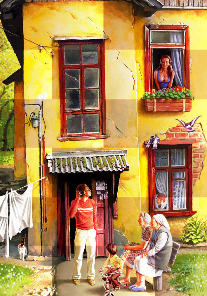 Подход к дому - через проулок, который является общим двором. Заходишь в проулок: то палки, то битые бутылки и банки, то железки, то арматура, то все сразу. Идешь мимо - какой-то сарай, а на полу выбитом окне - цветок в горшке. Люди живут. Дурдом.
