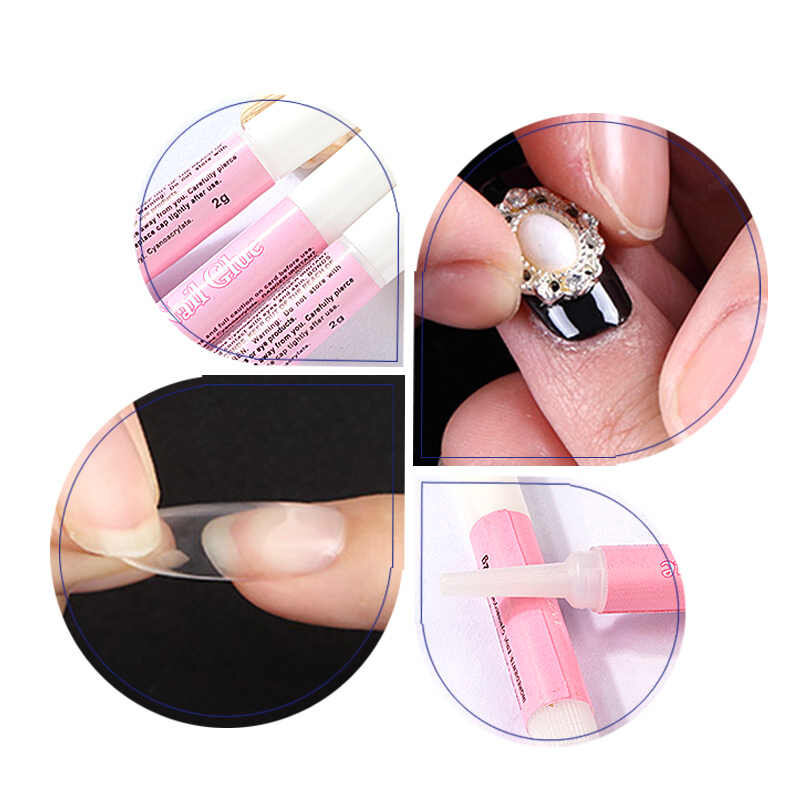 Помимо работы с типсами, клей применяют для ремонта своих или искусственных ногтей. Также с помощью средства прикрепляют стразы, кружево, фольгу и другие аксессуары. И всё же основное назначение этого полимера – срочный ремонт.