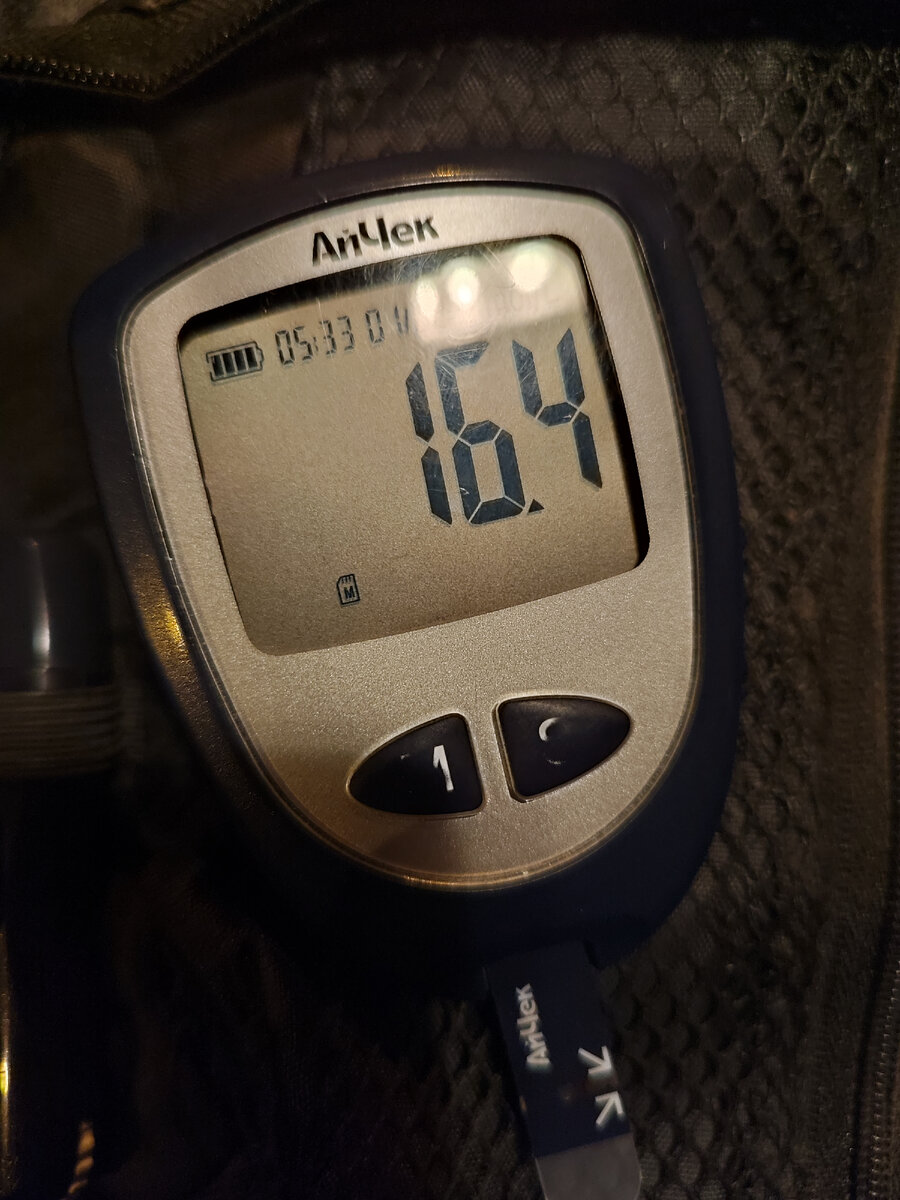 На протяжении трёх недель подряд замечаю такую вещь: на следующее утро после углеводной загрузки, а углеводная загрузка может быть внушительной (если в обычные дни на низкоуглеводной диете я съедаю 60-80 грамм углеводов в сутки или 0.8-1 грамм углеводов на килограмм тела, то когда дело доходит до дня рефида, я могу повысить эту планку до 10-12 грамм углеводов на 1 вес тела или до 1000 грамм углеводов в сутки), выхожу со стабильно высоким тощаковым сахаром - 14.5-14.7 по крови. Который потом не удаётся сбить в течение нескольких часов. Ничего не напоминает, да? При этом на протяжении всего дня углеводной загрузки сахара держатся строго в пределах нормы. Приведу пример завтрака: оладьи и карамельный соус. Чистые углеводы, высокий ГИ. Общее количество углеводов в моей порции - 150 грамм. Коэффициент инсулина 0.75 или 10 ед. Укол только через 30 минут после еды. Спустя час пиковый сахар - 5.2 по крови. И так далее в течение дня. Более того, на последующие приёмы пищи коэффициент инсулина