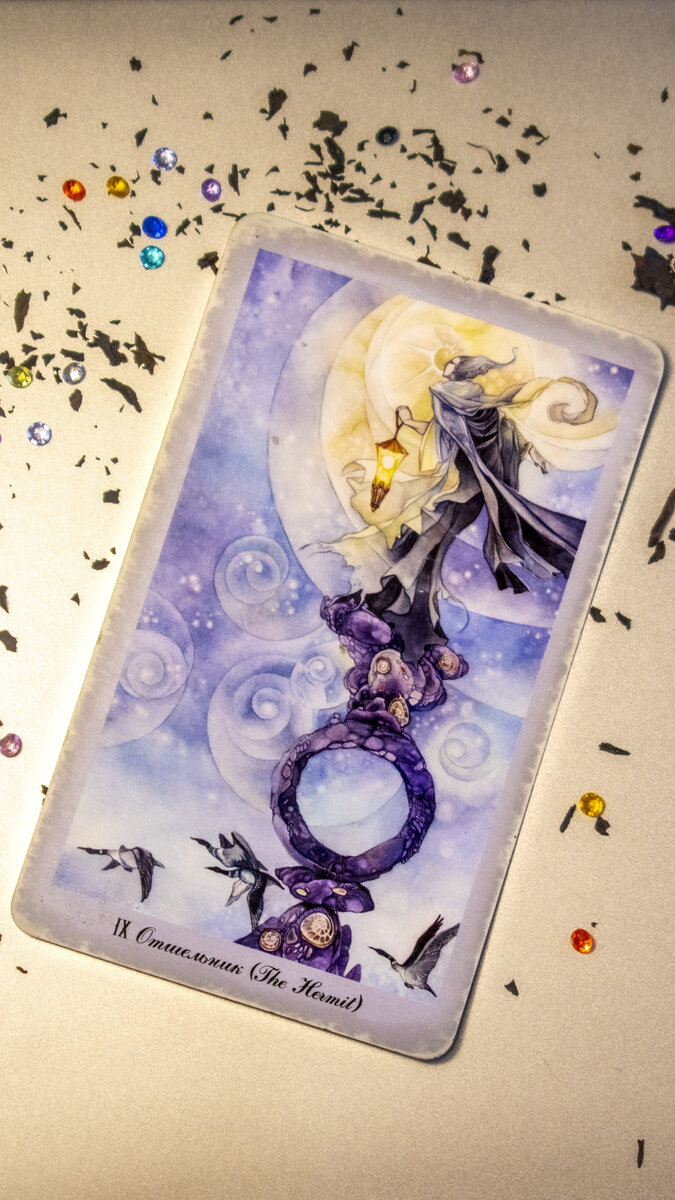 Сегодня мы с Вами изучим только одну карту - это карта Отшельник. Обратите внимание на изображение самой карты. Согнувшийся старик, который опирается на палку, и при этом еле еле идет по скале. Карта даёт нам намек, насколько слабый и беспомощный перед нами человек. Он стар и болен Нулевой Аркан - Шут (первый урок) Первый Аркан - Маг (второй урок) Второй Аркан - Верховная Жрица (третий урок) Третий Аркан - Императрица (четвертый урок) Четвертый Аркан - Император (пятый урок) Пятый Аркан - Иерофант (шестой урок) Шестой Аркан - Влюбленные (седьмой урок) Седьмой Аркан - Колесница (восьмой урок) Восьмой Аркан - Сила (девятый урок) Десятый Аркан - Колесо Фортуны (следующий урок) Характеристика человека: Карта Отшельник - говорит сама за себя. Такой человек ведет уединенный образ жизни. Он умеет радоваться мелочам, жить в бедности и скромности. Он никогда не попросит большего. Зато такой человек очень мудр и к нему часто обращаются за советом. Очень часто - он является специалистом в какой-т