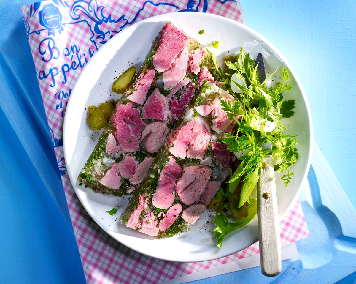 ОСНОВА: 1 слабосоленая свиная лопатка, 2 свиных ножки, 3 морковки, 1 головка лука-порея, 2 головки репчатого лука, веточка сельдерея, тимьян, лавровый лист, гвоздика, крупная морская соль, черный перец горошком, 350 г. плосколистной петрушки.