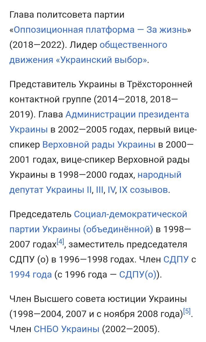 Виктор Медведчук один из тех ,кто выступал за то ,чтобы люди в Украине имели возможность говорить на русском языке. Один из тех кто не хотел уезжать из страны ,лишь потому что считал себя ее гражданином вопреки недовольным нацистам. Кто знал , что его ждёт за его деятельность. Думаю он не слабого десятка. Крепкий орешек, потому и гоним нациским режимом. Возможно, на фоне его лояльных взглядов к русскоговорящим он мог бы представить и конкуренцию Зеленскому. Ну зачем Зеленскому такие люди? Когда нужно поддержать себя самого.