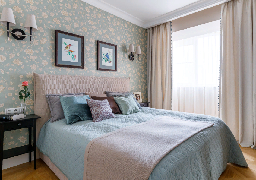 Цветочные обои - это довольно популярный и современный способ украсить комнату. На мой взгляд цветы, птички, веточки делают спальню уютной и какой-то домашней. Кстати, сейчас этот вариант дизайнеры часто используют для реализации в своих проектах. (Фото реализованного дизайн-проекта)