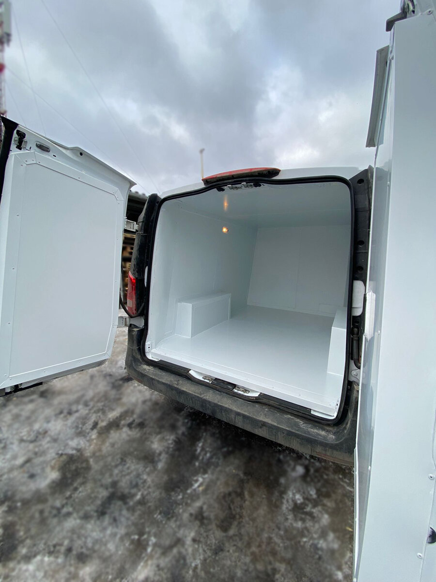 Для перевозки охлажденной или замороженной продукции важно наличие теплоизоляции фургона. Для автомобилей на базе шасси используются специальные изотермические фургоны, цельнометаллические авто дооборудуются теплоизоляционными панелями. Задача: Изолировать перевозимые на короткие расстояния охлажденные до около нулевых температур грузы от воздействия температуры окружающей среды. Решение: В соответствии с поставленной задачей была предложена теплоизоляция панелями ППУ 40 и 60 мм. Оба варианта теплоизоляции подходят для решения поставленной задачи. Панели толщиной 40 мм подойдут для легкой теплоизоляции — необходимой для выполнения поставленной задачи. Панели изготавливаются на заводе и имеют все необходимые сертификаты соответствия, после чего поступают на производство для последующего раскроя и подготовки к монтажу в кузов автомобиля. Процесс теплоизоляции панелями ППУ занимает в среднем 7-10 рабочих дней. Этого требует технологический процесс и необходимость последовательного выполне