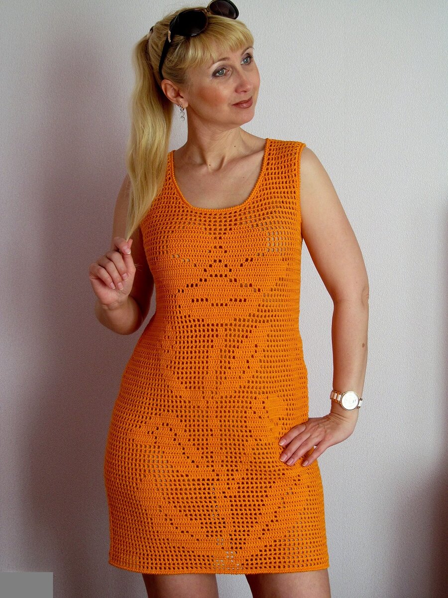 Девочки, всех приветствую! Ловите идейку вот такого сарафанчика или тунички к предстоящему летнему сезону! Такая вещь хороша, как пляжный вариант. Пряжа здесь "Беби Коттон" от "Газзал" цвет 3419. Расход на размер 44 - 7 моточков (350гр), крючок №2. Но все же лучше взять 100% хлопок. Обычная филейка. Немного приталивала. Низ, горловину и проймы обвязывала рядом столбиков с накидом и рачьим шагом. Схема взята из свободного доступа в интернете. Всем удачи и хорошего настроения! Больше видео и МК на моем канале в RUTUBE