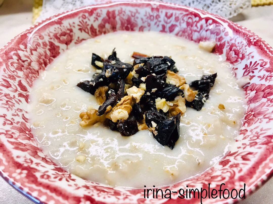 #каша #завтрак Овсяную кашу можно приготовить разными способами и приправить разными добавками, попробуйте мой вариант вкусного завтрака. Ингредиенты: овсяных хлопьев (беру всегда N1), воды, молока, сливочного масла, соль и сахар , чернослив, грецкие орехи Способ приготовления: Овсяные хлопья залить водой, поставить на огонь, как закипит, добавить молоко, сливочное масло, соль и сахар по вкусу, довести до готовности на медленном огне. Подать с добавлением рубленых грецких орехов и измельченном черносливом. Приятного аппетита 😋.