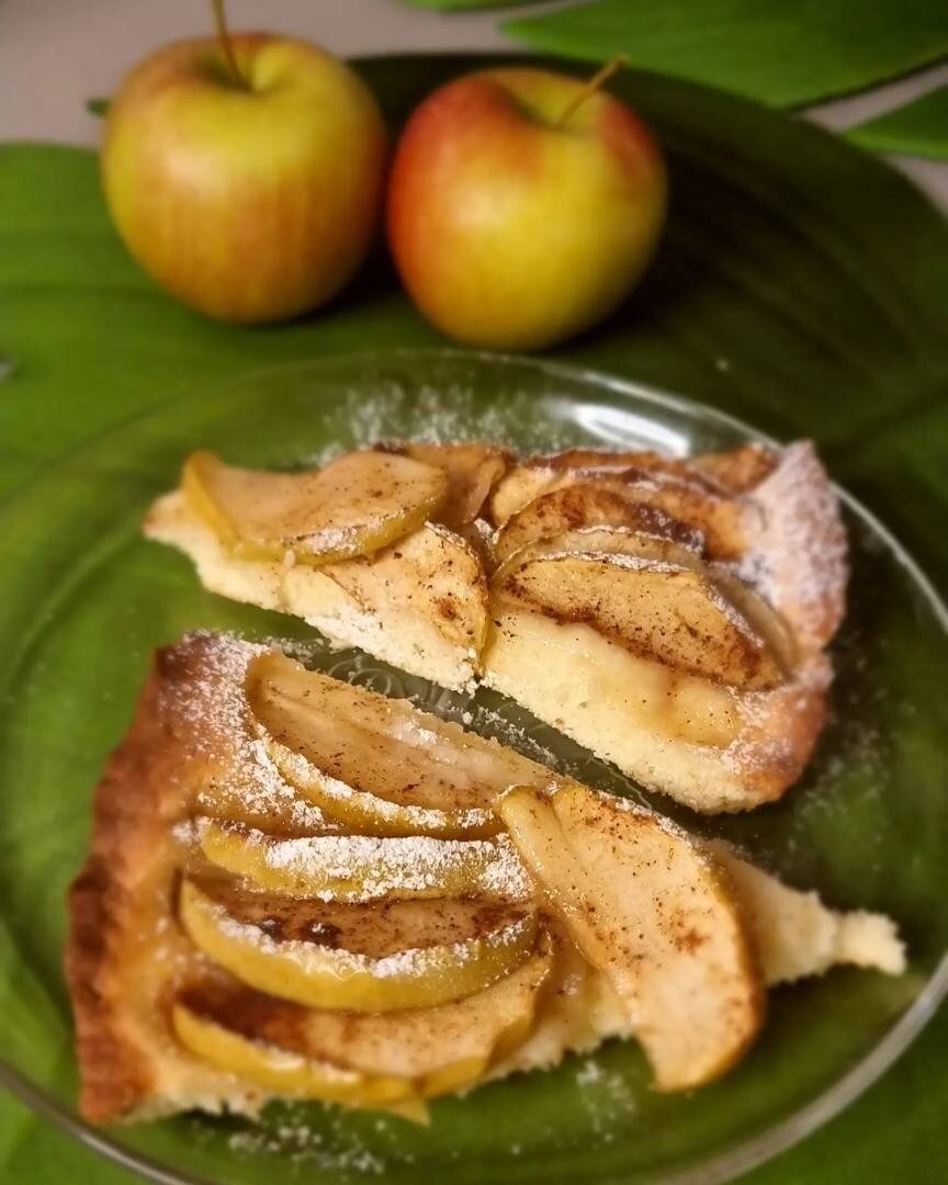 Сегодня готовлю шарлотку из песочного теста. Ингредиенты: 🍎 яйца, 🍎 сахарного песка, 🍎 мягкого сливочного масла, 🍎 муки, 🍎 сметаны, 🍎 разрыхлителя, ванили Способ приготовления: Венчиком взбиваем яйца с сахарным песком, добавляем разрыхлитель, ванилин, 2 столовые ложки сметаны, мягкое масло. Постепенно всыпаем муку и все тщательно перемешиваем уже ложкой. Выкладываем тесто на силиконовый коврик, присыпаем муку и формируем колобок. Далее, форму смазываем маслом, присыпаем мукой, выкладываем тесто, сверху кладем дольки яблок. Дольки яблок заранее присыпать сахаром и корицей. Ставим на 180° на 30-35 минут. Как пирог остынет, посыпать сахарной пудрой.