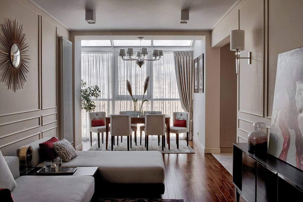 Дизайнер Наталия Худая соединила в интерьере квартиры прохладу северных ветров и теплые оттенки песчаных дюн, создав идеальный дом для пары петербуржцев. Владельцы жилья – молодая пара – сразу нашли с авторами общий язык. Приоритетом для супругов в оформлении жилища было создание в интерьере легкости, стиля и уюта. Вполне закономерно, ведь внешний дискомфорт влажного и прохладного климата северной столицы требует стопроцентного комфорта внутри жилища. Подтверждением постулата о материальности мысли, а творческой инициативы – тем более явилось пополнение семьи прямо в процессе работы мастеров. Поэтому дизайнер по ходу дела запланировала детскую. Гостиная. Светильники: люстра Sylcom, бра Dettagli — На мой взгляд, прежде всего дизайнер должен понять, что именно хочет заказчик, даже если его желание сформировано не до конца и идеи только витают в воздухе, – уверена Наталия Худая. – Для меня важно создать эффектный интерьер, сохранив комфорт и удобство. Во время работы над этим проектом реф