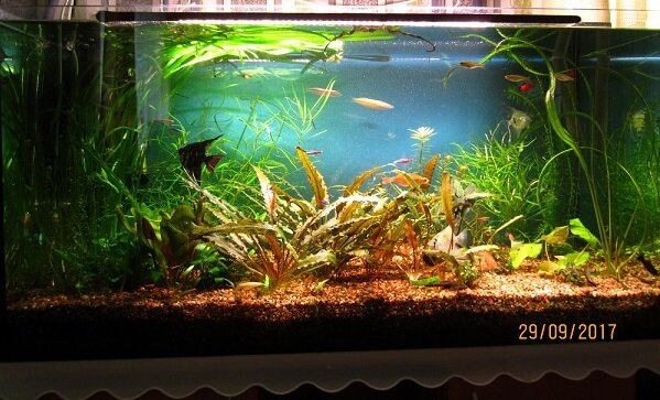 Многие задаются вопросом относительно оптимального количества населения в аквариуме. Количество населения лучше всего определять не поштучно, а по концентрации нитратов, которое вырабатывает все население. Этот показатель учтет все составляющие, в том числе и влияние растений. Для молодого аквариума, концентрация нитратов до 3-5 мг/л, будет достаточно. Когда полноценно сформируются биологические процессы, добавлять рыбу нужно маленькими партиями по 3-5 штук через 2, а лучше через 3 недели. Если вы увидите снова появление грязи в аквариуме, тогда нужно остановиться и ждать когда бактерии увеличат свою популяцию и грязь исчезнет.