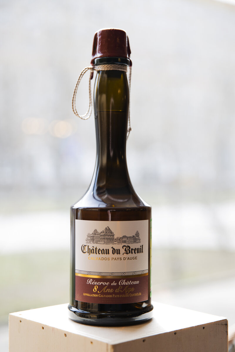 Chateau du Breuil, "Reserve du Chateau" — лёгкий и элегантный фруктовый кальвадос, созданный из ассамбляжа спиртов 8-летней выдержки из разных бочек. Кальвадос произведён по уникальной технологии в соответствии с законами о производстве кальвадоса в регионе Pays d'Auge. Кальвадос "Резерв дю Шато" получил золотую медаль на конкурсе "International Wines & Spirits Competition" в Лондоне в 2003 году, серебряную медаль и титул "Лучший в своем классе" на конкурсе "International Wines & Spirits Competition" в Лондоне в 2006 и 2008 годах. «Солнце Нормандии», фруктовый бренди, известный под названием «кальвадос», получается путем перегонки сидра из яблок. Производители используют яблоки определенных сортов: обычно они небольшие и обладают ярким, сильным ароматом. Секрет роста и созревания этих яблок кроется в почве и особом очень мягком климате региона. Колыбель кальвадоса – Нижняя Нормандия. Этот фруктовый бренди был известен еще в XVI веке, когда в своем «Дневнике» французский дворянин Жил