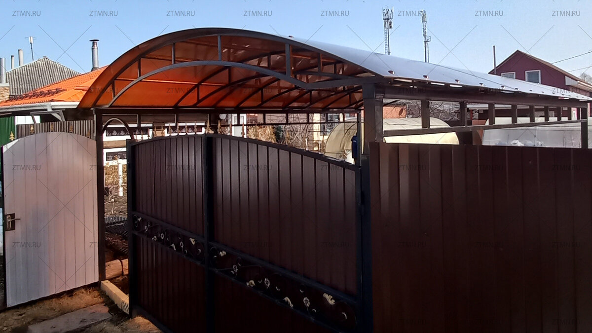 Навес из поликарбоната арочного типа размером 4,7х6 метров.