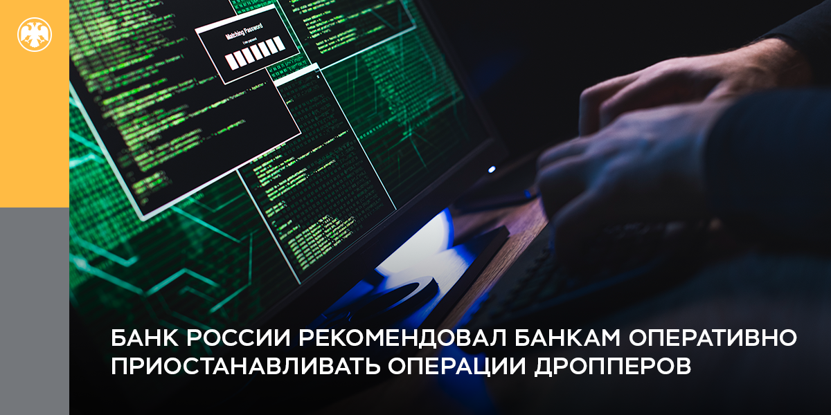 Банк России рекомендовал банкам оперативно приостанавливать операции дропперов