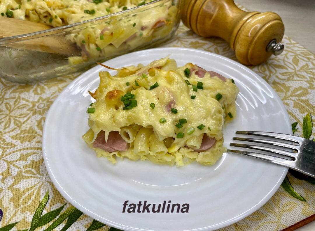 Быстро, вкусно и легко! Готовьте с удовольствием! Ингредиенты: макароны, сосиски, яйцо, майонез, сыр, соль Способ приготовления: Макароны отварить в подсоленной воде 7-9 минут (по инструкции) откиньте на сито. Жаропрочную форму смазать маслом, выкладываем отварные макароны. В миске соединить яйцо, майонез и щепотку соли. Перемешать. К макаронам добавляем сосиски нарезанные кружочками, перемешать. Сверху вливаем яичную массу. Сыр натереть на крупной тёрке и посыпаем сверху. Отправляю в разогретую духовку до 200 градусов на 15-20 минут. Перед подачей посыпьте зеленью. Приятного аппетита!