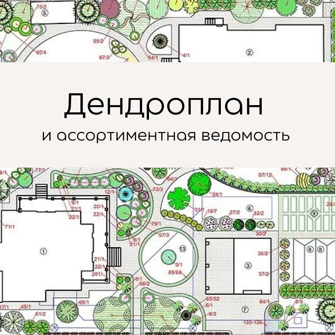 Дендроплан - один из самых сложных чертежей, ведь он требует от проектировщика не только знания ассортимента растений, но также и их физиологию.