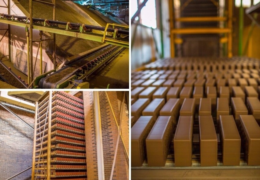 Клинкерный кирпич - высокопрочный строительный материал, который отличается долговечностью, повышенной маркой прочности, морозостойкостью, стойкостью к химическим и механическим повреждениям. Для создания высокопрочного облицовочного материала требуется специальное сырье - глина с повышенным содержанием оксида алюминия. Обжиг кирпича происходит в специальных печах при температуре в 1000-1400 градусов. Существует два основных способа производства клинкерного кирпича: Подготовленная смесь подаётся через специальный канал в виде прямоугольника и в дальнейшем нарезается по заданным размерам. После сушки в камере кирпичи обжигают в печи. Глиняную смесь высушивают и превращают в порошок, которым наполняют формы методом прессования. Под воздействием огня масса превращается в готовое изделие. Производство клинкерного кирпича отличается от обычного длительным и мощным обжигом. При 1000 градусов наступает стадия "стеклофазы", когда на поверхности блока появляется тонкая плёнка, издающая характ
