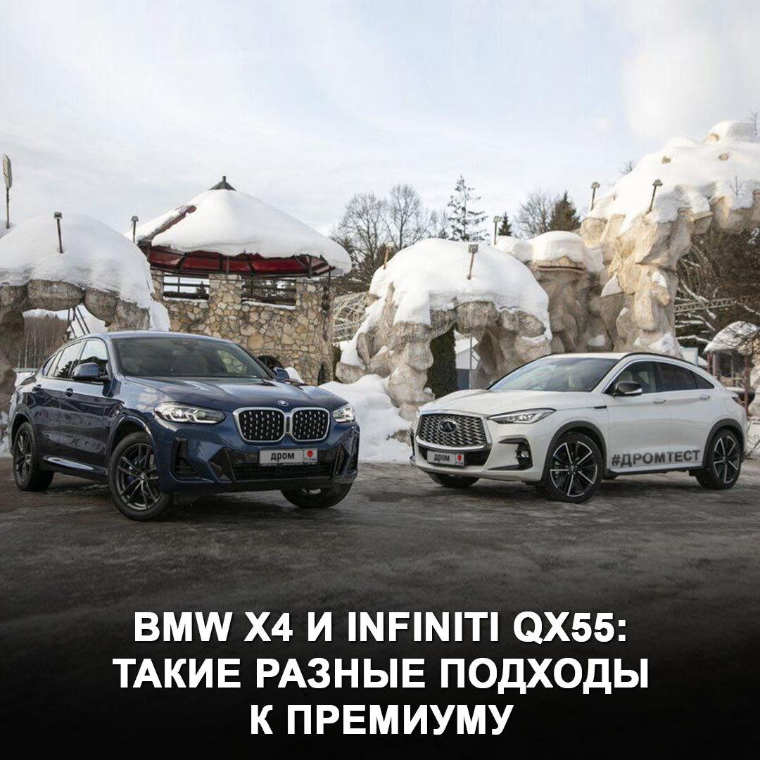 «Немец» или «японец» — сравниваем разные подходы к премиуму на тесте кросс-купе BMW X4 и Infiniti QX55.