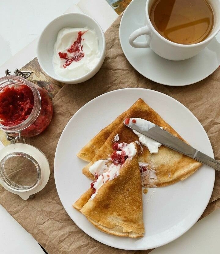 Рецепт простых блинов🥞 Ингредиенты: ▫️1 ст.молока (можно растительное) ▫️2 яйца (я покупаю только СО) ▫️1 ст.кипятка ▫️1ст.муки высшего сорта ▫️1-2 ст.л. оливкового масла ▫️2 сахар по вкусу, я не добавляю совсем ▫️щепотка соли ________________________ 🧚🏿♀️Способ приготовления: 1️⃣Взять болл туда налить молоко (желательно комнатной температуры), 2 яйца , сахар, соль и все взбить (вилкой или миксером) 2️⃣Затем потихоньку всыпаем муку и паралельно смешиваем (здесь сначала оучше вилкой, а потом миксером , чтобы не было комочков) 3️⃣Вливаем стакан кипятка, интенсивно замешивая, в самом конце оливковое масло ____________________________ У меня есть специальная блинница, покупала в Ашане за 300 рублей Разогрели, смазали кисточкой с маслом и печём блины. Каждый раз сковороду не нужно смазывать , мы смотрим, если возникают сложности с переворачиванием, то модно смащать. У меня за все время 3 раза пришлось. Поделитесь отзывом, если приготовили по этому рецепту. также с радостью почитаю