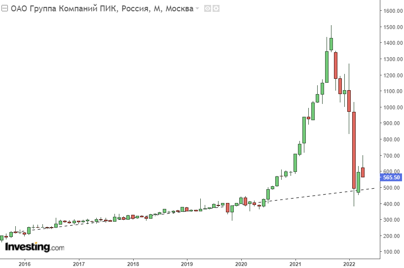 Полюбуйтесь лопнувшим пузырем в акциях ПИК: Надули пузырь в 3 раза. И сдули в 3 раза. Как нех** делать. Почему сдулся пузырь? Потому, что скоро начнется то, о чем мечтает вся российская интеллигенция: Особо одаренным читателям напоминаю: Посмотрите внимательно на график. Рублевые цены бетона умеют падать. Если не верите, проведите по графику пальцем.