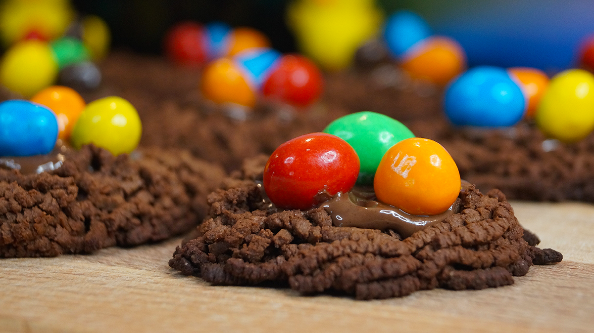 В прошлом году накануне Пасхи в моем праздничном меню оказался один очень интересный рецепт... Не пасха, не кулич, не какое-то другое традиционное блюдо, а печенье – шоколадное печенье «Гнёзда» с M&M's. Рекомендую вам попробовать приготовить его к приближающемуся Светлому празднику: и взрослые, и дети будут в восторге! Проверено! Ингредиенты Приготовление 🎥 Видеорецепт: 📝 Текстовый рецепт: 1. К 200 г муки добавляем щепотку соли, 5 г разрыхлителя, 100 г сахарной пудры и 40 г какао-порошка. Смешиваем все ингредиенты. 2. Добавляем 70 г холодного сливочного масла. Растираем его в крошку вместе с сухими ингредиентами. 3. Добавляем 1 яйцо и замешиваем плотное тесто. Дальше нам понадобится чеснокодавка. 4. Из теста формируем шарики такого размера, чтобы они после смогли поместиться в чеснокодавку. 5. Отправляем их в холодильник на 1,5-2 часа. 6. На противень, застеленный пергаментной бумагой, выдавливаем замороженное тесто и формируем гнёзда. Для одного гнезда потребуется 2-3 шарика. 7. З