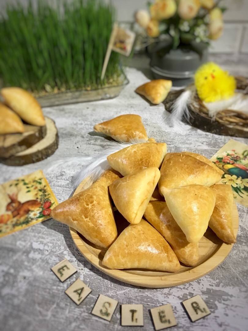 Очень интересный и необычный вкус, попробуйте🤤🤤🤤 Ингредиенты: яйца, мацони, сметана, сливочное масло, сода, соли, мука, Начинка, зеленого лука (~300-400 г), тархун , шпината (не обязательно), яйца вкрутую, раст.масло, соль, белый молотый перец, красный острый перец, паприка Способ приготовления: Для теста взбиваем вместе 1 яйцо и 1 белок (желток оставим для смазывания), мацони со сметаной и содой. Добавляем мягкое сливочное масло, соль, постепенно вводим муку и вымешиваем эластичное мягкое тесто. Оставляем под пленкой, и готовим начинку. Мелко шинкуем зелень, лук отдельно слегка прожариваем до мягкости, убираем с огня, добавляем остальную мелко нарезанную зелень и натертые на крупной терке яйца. Если у вас тархун с жесткими стеблями, берите только верхушки. Добавляем специи и готово. Тонко раскатываем тесто,вырезаем кружочки, выкладываем по чайной ложке начинку и лепим пирожки. Форму можно любую. смазываем желтком и выпекаем разогретой до 200 с духовке до румяности.
