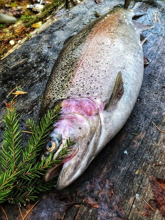 Форель – общее название разновидности хищных пресноводных рыб из семейства лососевых. В Республике Карелия она является распространенной рыбой. Форель встречается в естественных условиях и выращивается в промышленных масштабах. Общая информация Представители данного вида имеют продолговатую форму тела, покрытую мелкой блестящей чешуей с черными вкраплениями по бокам. На спине у них расположены 2 небольших плавника: основной и жировой (ложный). Голова у рыбы треугольной формы средних размеров с небольшими глазами и ртом. Самки, как правило, крупнее самцов, но имеют меньшее количество зубов. По форме челюсти можно узнать их возраст. Чем старше особь, тем сильнее нижняя челюсть загнута кверху. Окрас форели зависит от среды обитания, видовой принадлежности и времени года. У представителей, живущих в илистых водоемах с торфяным дном, тело приобретает темный оттенок (вплоть до угольно-черного). В водоемах с прозрачной водой и светлым дном рыба окрашена в серебристый цвет с небольшими темными