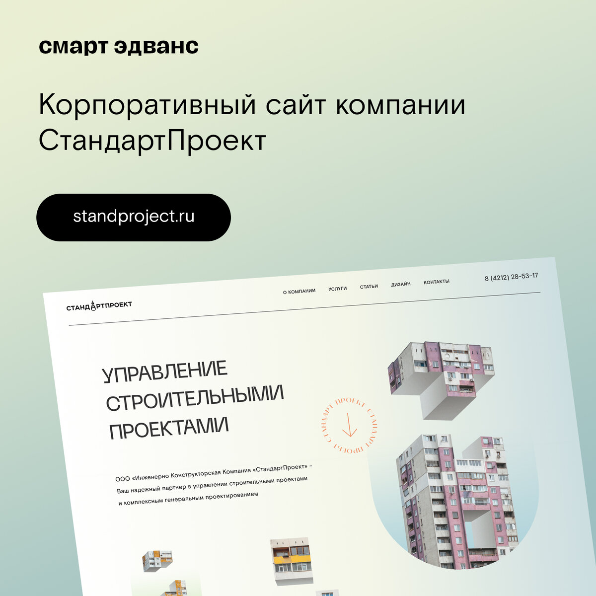 Корпоративный сайт компании Стандарт Проект 📐 Компания специализируется на проектно-изыскательских работах, техническом обследовании и инжиниринговых работах по сопровождению объекта строительства. Перед нами стояла задача разработать современный минималистичный сайт с функционалом публикации проектов и статей блога. Смотреть кейс: https://smartadvance.ru/standart.php