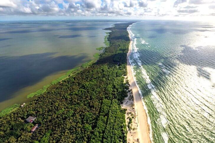 История Куршская коса получила название из-за племени куршей, которые обитали на ее территории в эпоху раннего Средневековья. Курши — одно из балтских племен, родственники пруссов, которые заселяли территорию нынешней Калининградской области. Сейчас Куршская коса фактически поделена пополам. Часть этого уникального природного образования принадлежит России, другая часть — Литве. Граница, если считать от города-курорта Зеленоградска, проходит на 49-м километре. На российской территории находится национальный парк «Куршская коса». Основную часть территории (более 70 процентов) занимают леса. Тут растет около 600 видов растений и обитает более 200 видов наземных позвоночных животных. Из крупных — кабан, лисица, косуля, лось. Через Куршскую косу проходит древний миграционный путь птиц, который пролегает из северной Европы в Средиземноморье. В дни миграций ежедневно пролетает до миллиона пернатых. Это удивительное явление не было оставлено без внимания: еще в начале прошлого века на косе о