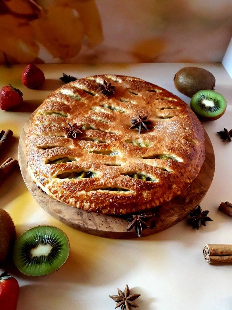 Сочный ароматный пирог 🥧🥝 из готового слоеного теста 🥧🥝 #выпечка #пирог #киви #слоеноетесто #моякухня Ингредиенты: Сахар , слоеного дрожжевого теста, киви 🥝, яйцо 🥚 Способ приготовления: Слоеное тесто разморозить. Раскатать два круга. На одном круге сделать надрезы. Второй перенести на противень, застеленный пекарской бумагой. Киви 🥝 почистить, нарезать кружочками. Выложить 🥝 на второй круг. Посыпать сахаром. Края круга смазать взбитым вилкой яйцом 🥚. Накрыть кругом с надрезами. Края прищипнуть вилкой. Смазать пирог взбитым вилкой яйцом 🥚, посыпать сахаром. Поставить в заранее разогретую до 200 гр духовку, выпекать 25-30 минут. Из остатков теста можно сделать булочки 🥐 и также выпечь. Остудить на решетке. Приятного аппетита! 🥝🥧