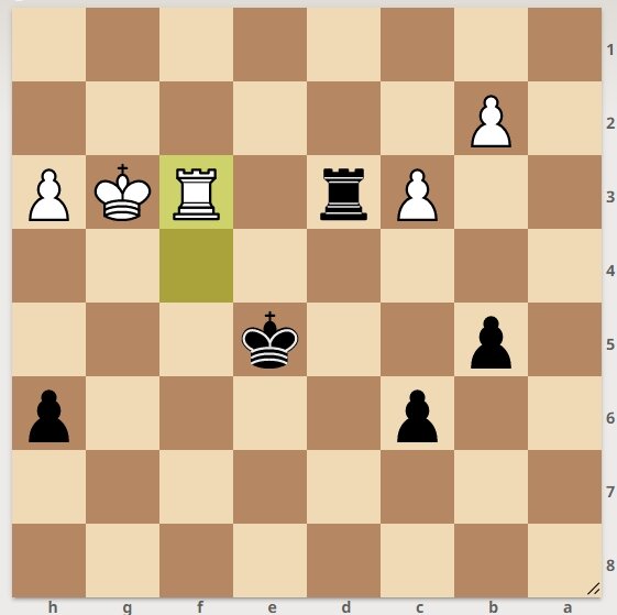 На шахматной доске равное в материальном плане окончание. Белые закрылись ладьей. Но черные начинают и получают решающий перевес. Ставьте лайк и будут новые интересные задачи. Выигрыш за черных далее. 1. ............... черные идут королем на "е4". И далее, после размена ладей, черный король оказывается возле белых пешек. Черные легко побеждают. Следующая задача тут>>>>