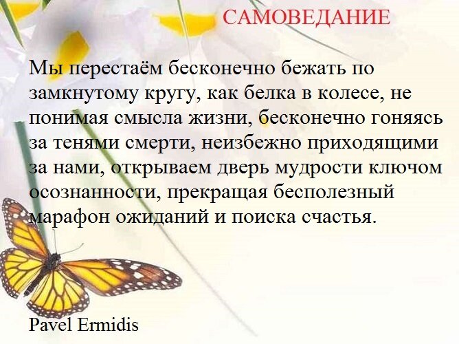 Мы перестаём бесконечно бежать по замкнутому кругу, как белка в колесе, не понимая смысла жизни, бесконечно гоняясь за тенями смерти, неизбежно приходящими за нами, открываем дверь мудрости ключом осознанности, прекращая бесполезный марафон ожиданий и поиска счастья. На первый взгляд может показаться история печальной, в которой нет начала и конца, расставаясь с иллюзиями реальности отдельного существования объектов в отрыве от субъекта, в котором разыгрывается спектакль, имеющий множество актёров и только одного Зрителя. Зрителя — Творца, дающего нам прочувствовать все краски жизни через восприятие бесконечных оттенков Света, многогранных испытаний осознанной любви, единственной эмоции, открывающей сердце, нектар бессмертия в виде слёз радости, питающей корни Лотоса, произрастающего в нас. Он остаётся вечно сияющим символом чистоты и благости, не позволяет малейшей пылинке заблуждения задержаться на Его прекрасном бутоне, распахнутом 1000 лепестками, являясь ещё одной Жемчужиной, выра