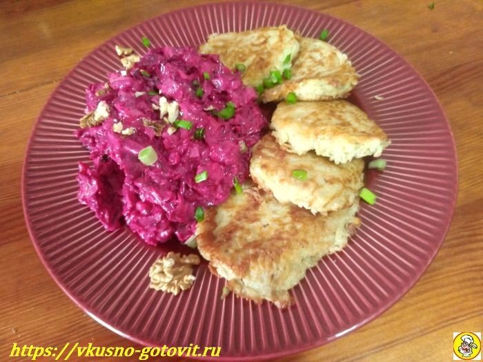 Если вы хотите приготовить драники на обед, то подайте их со свекольным салатом.
