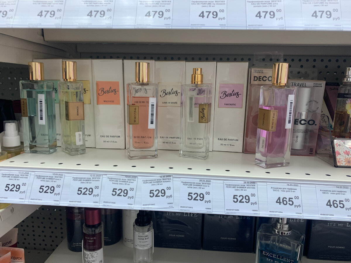 В магазине меня привлекли симпатичные флаконы, которые выглядят минималистично, но стильно. Ароматы от фирмы Besties. У каждого свое название. Отличает их только оно + цвет жидкости. Согласитесь, выглядит достойно для бюджетного бренда. У меня был целый челлендж: "найти бюджетные ароматы, которые дорого звучат". Сейчас все дорожает, поэтому люкс для многих стал чем-то еще менее доступным. Походив по магазину, я выявила некоторых любимчиков. Например, нейтральный аромат без аромата, масляные духи без спирта со сложными пирамидами, веселые моноароматы, спреи для тела аля Виктория Сикрет. Ладно, вернемся к Besties. Во-первых, странное название, которое скорее отпугивает. Во-вторых, ароматы оказались ну очень дешево звучащими. Не стоило тестировать все, чтобы сделать данный вывод. Про раскрытие мечтать не стоит - его просто нет. Считаю, что "такое" не может стоить даже 529 рублей, даже за 100 не купила бы. К сожалению, достойный бюджетный аромат в магазине Подружка найти слишком сложн