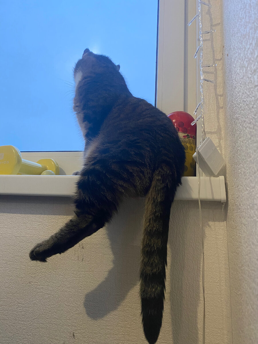 Я уже писала о том, что у Паниковского астма. Причём диагноз долго не могли поставить, кот задыхался. Вот уж мы тогда намучились. Но нам повезло найти хорошего доктора, который поставил диагноз и сказал, что делать, когда возникают приступы. Нужно делать то же, что делают люди-астматики - дышать из баллончика. Только у кота более хитрая схема. Из баллона надо брызгать сначала в половинку 1.5 литровой бутылки, потом туда голову кота помещать. В дне бутылки нужны дырочки, чтобы воздух был. Начинались приступы весной, когда цвели поля. У меня же рядом с домом поле и лес, а жила я с котиками на втором этаже и естественно, вся эта пыльца попадала в дом. Потом так получилось, что мы переместились в соседний дом, аж на двадцать третий этаж. Мне страшновато было, но квартира подвернулась тогда по очень хорошей цене. Да и площадь больше, котикам есть, где порезвиться теперь. Оказалось, что переезд пошёл на пользу. Потому что новый дом чуть дальше от поля и до двадцать третьего этажа пыльца не
