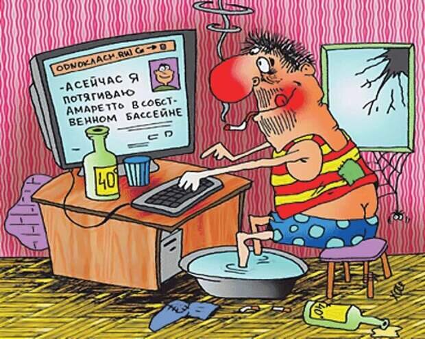 Хватит по мне тыкать! Хватит я сказал! Не отвечает она тебе! Потому что ты , дурак! Вы посмотрите на него, орет, кричит, слюной брызжет, меня всего забрызгал гад ! Уймись я тебе говорю! Нечего было писать ей , что красивая как бутылка пива в холодильнике утром первого января. Все забудь о ней, так же просто , как о тебе все забывают, опыт есть. Ты когда жену с массажистом забыл и то потом так не сокрушался, все , успокойся. Вон вон смотри, сюда смотри придурок, какую показываю тебе и тут и там и здесь и везде, ммм как раз не для тебя, у тебя и так печень на ладан дышит, а там химия сплошная. В твоем состоянии здоровья , надо уже натурпродукт выбирать. Так что у нас там еще есть, сейчас полистаю, о на смотри, добрая, хорошая, милая, нежная, ну вылитый трактор беларусь! Что ты харю от нее свою воротишь?! Нашелся мне то же секс символ, о котором я лучше помолчу. Будем за ней как за каменной стеной, будет нас с тобой в рюкзаке за плечами в походы носить. Только спорить с ней нельзя будет,