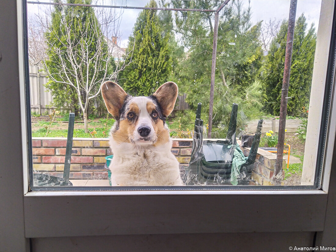 Обижаются, когда их в дом не пускают. А им очень надо. Особенно в сырую погоду. Носятся, носятся вдвоем по саду, извазюкаются в земле, а потом им домой надо. Тильде - чтобы поваляться на мягком, она же принцесса, спит на диване. А Снуп - в неиссякаемой надежде перехватить что-нибудь съедобное. Он еще подросток, растёт, ему надо, метёт всё как пылесос, только глазом моргни. Первым делом Снуп проверяет кошачьи миски, там непременно должно остаться хоть пару горошин сухого корма. Мы уже перестали кормить кошек на полу, ставим миски на полку кухонного стеллажа. Но этот мальчишка растет не по дням, а по часам. Уже умудряется и там дотянуться. Тильда тоже не против кошачьей еды. Но без фанатизма, как в первое время. Уже хорошо понимает, где ее пайка, а где вражеская. Если кошки едят, она близко не подойдет. Ляжет на расстоянии метра и будет наблюдать за процессом. Но и потом сразу не бросится проверять миски, а будет довольно долго размышлять и поглядывать по сторонам. При этом свою плошку