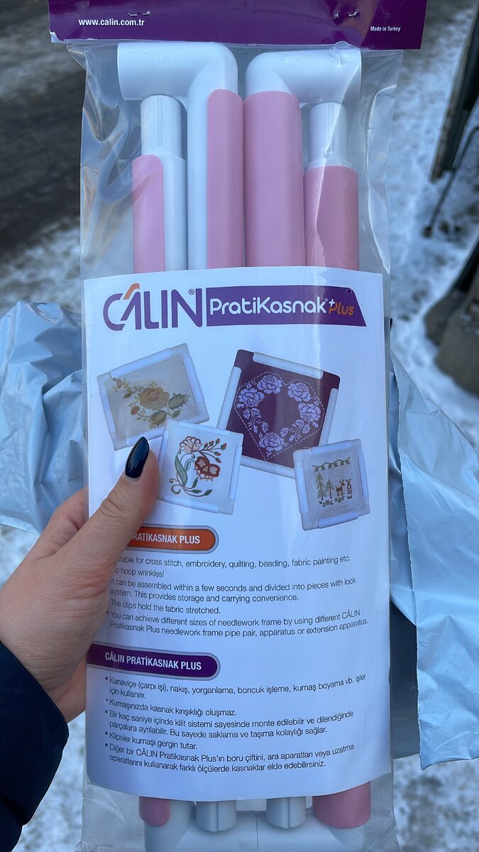 Мои первые Пяльцы Q-snap появились в начале этого года. Заказала их на Wildberries, Турецкие Calin. Прочитала множество отзывов в интернете на них и отзывы разнятся, кому то очень нравятся и больше не вернутся на деревянные рамы, а кому то совсем не понравилось и считают выброшенные на ветер деньги. Но я не могла не попробовать сама и заказала размер 35,5х35,5 розового цвета. В этом магазине Q-snap были представлены в размерах: 20х20, 20х28, 28х28, 28х35,5, 35,5х35,5 Ехали они меня долго, больше 2-х недель, Алматы находится далеко от Москвы, но их я дождалась. Пришли запечатаны в плотный дополнительный пакет, а сами снапы запечатаны в фирменную упаковку. Сразу как пришла домой, я натянула работу на снапы, нетерпелось попробовать их в работе. На снапах вышила полностью работу Rose bouquet от Dimensions основу взяла равномерку белорусскую, совсем мягкая, совсем рыхлая. На деревянной раме не смогла вышивать, т.к. не было натяжения от слова совсем. НО! снапы справились на все 100%! Нат
