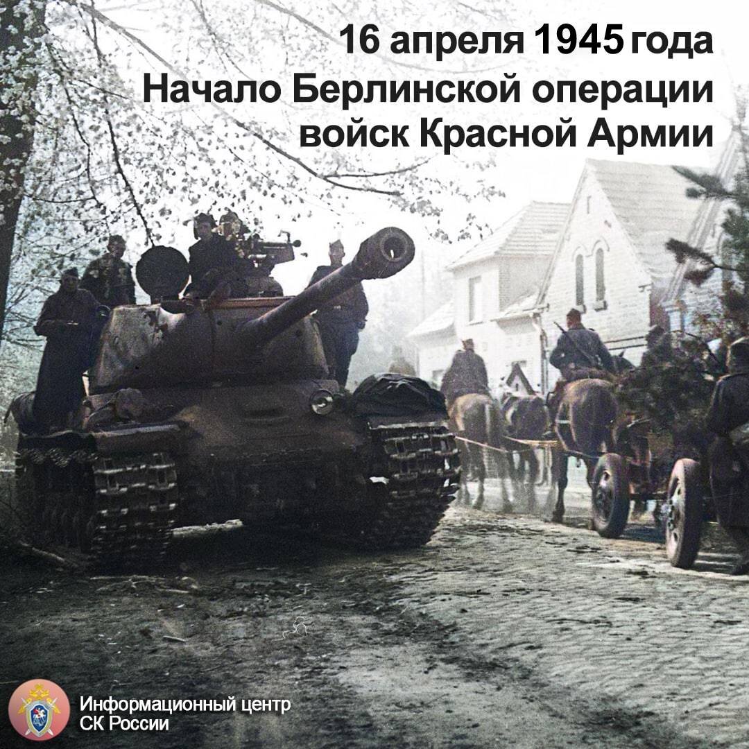 В этот день 77 лет назад началась Берлинская операция. По ее итогам 1-й Белорусский фронт по командованием маршала Жукова взял столицу «третьего рейха» при поддержке с юга частей 1-го Украинского и с севера частей 2-го Белорусского фронтов под командованием маршалов Конева и Рокоссовского. Эта битва стала завершением Великой Отечественной войны. 📍Советские войска на фронте протяженностью в 300 километров продвинулись с востока на запад по территории Германии на расстояние от 100 до 200 километров, преодолевая сопротивление миллионной группировки вермахта. Более 6 тысяч танков, 8 тысяч самолетов создали подавляющее преимущество Красной армии. К проведению операции было привлечено около 2,5 миллиона человек. 📍Накануне операции на основе около 15 тысяч аэрофотоснимков был создан точный макет Берлина. Район вокруг изобиловал большим количеством водоемов, лесов, использовавшихся противником при создании системы обороны. Передний край прикрывался минными полями, проволочными заграждениям