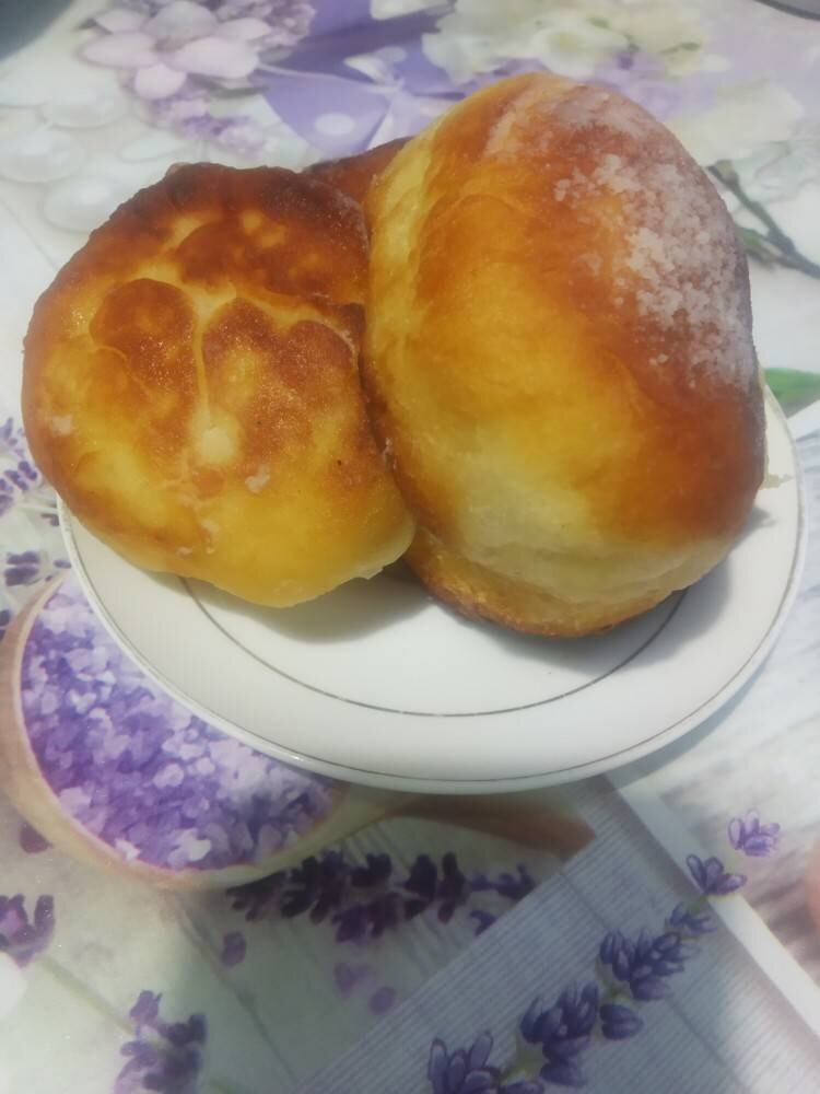 Готовятся быстро и просто! Можно использовать для начинки крем, варенье или просто посыпать сахарной пудрой!😊☕🍵🏵️ Ингредиенты: муки, яйцо+1 яичный желток, сахара, молока, свежих дрожжей, несоленого размягченного сливочного масла, соли Способ приготовления: Дрожжи смешать с сахаром, добавить теплое молоко. Просеять муку, добавить соль, яйца и подошедшие дрожжи. Замесить тесто, оно будет липнуть к рукам, постепенно вводить по кусочку масло и месить.(примерно 10- 15 минут). Поставить в теплое место, накрыв (когда подойдёт, можно работать с тестом). Сформировать шарики, порция на 12 штук (но я делала их меньше размером, для удобства). Обжарить на растительном масле до золотистого цвета. Наполнить кремом или посыпать пудрой. Приятного чаепития!!!!