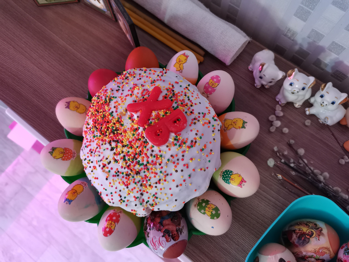 Простой рецепт без опары. Нам понадобится: ДЛЯ ТЕСТА. - 6шт. Яиц +2 шт. на глазурь. -400 мл. Молока. -200 гр. Сливочного масла. -1 пак. быстродействующих дрожжей. -1кг.100 гр. Муки пшеничной в/с. -250 гр. Сахарного песка. -300 гр. Изюма. -1 пак. Ванильного сахара. - Цедра 1-го лимона. -пол чайной ложки соли. ДЛЯ ГЛАЗУРИ. -белок от 2-х яиц. -1 ст.л. лимонного сока. -150 гр. сахарного песка. И так начинаем. Подогреваем в микроволновке немного молоко, и подтапливаем сливочное масло. 1. Разбиваем в миску яйца, можно разбить 6 шт. полных и 2 желтка от яиц белки которых пойдут на глазурь. Белки отделяем и ставим в холодильник, так они лучше будут взбиваться. В яйца добавляем соль, сахар, лимонную цедру. Добавляем тёплое молоко, подтопленное сливочное масло и дрожжи. Берём сито и просеивая добавляем порциями муку , тесто должно получится не очень тугим но и не должно прилипать к рукам. Вымешиваем тесто и ставим его на растойку на 1 час, можно в духовой шкаф если есть такая функция или в тё