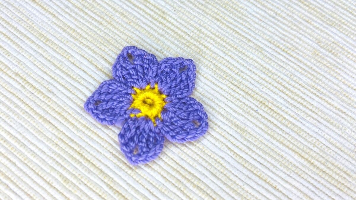 Мастер-класс по вязанию крючком маленького фиолетового цветочка.